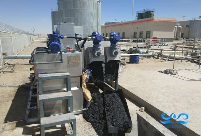 疊螺機(jī)脫水的工作原理是利用螺旋軸的旋轉(zhuǎn),使污泥在螺旋軸和螺桿之間形成濾餅,并通過(guò)濾餅的過(guò)濾和擠壓來(lái)分離水分。疊螺機(jī)通常需要在污泥進(jìn)入機(jī)器之前進(jìn)行絮凝和沉淀,以減少雜質(zhì)和懸浮物對(duì)機(jī)器的堵塞和磨損。因此,絮凝劑的添加是疊螺機(jī)污泥脫水過(guò)程中必不可少的一步。